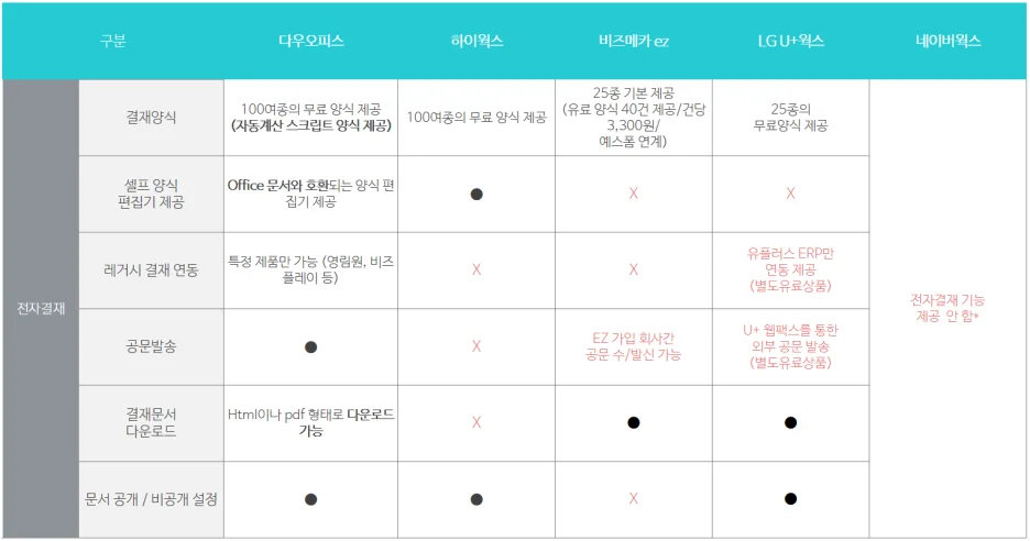그룹웨어 전자결재 기능 비교