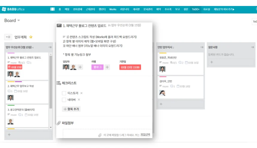 이상 올인원 업무 플랫폼 다우오피스였습니다.