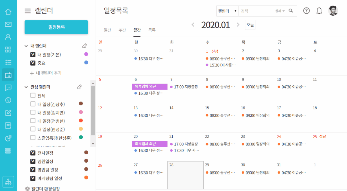다우오피스 캘린더에 프로젝트별 일정을 등록해
