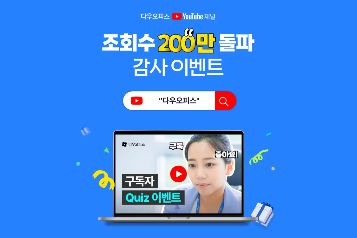 (종료) 다우오피스 유튜브 조회수 200만 돌파 감사 이벤트🎁