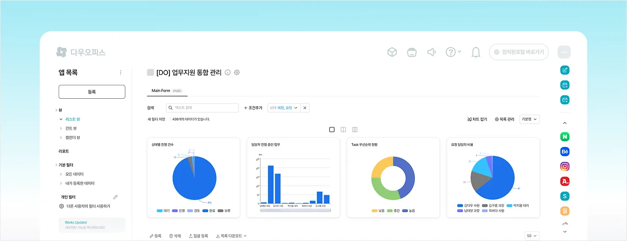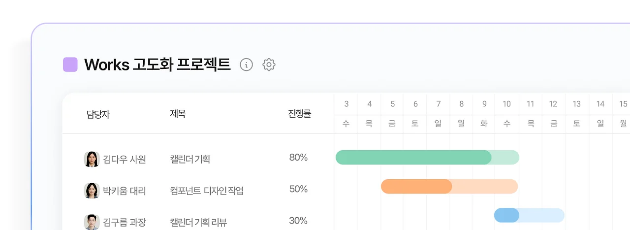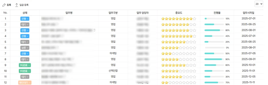- ๋ด๋น์ ์ง์ , ์์ ์ํ ํ์ ๋ฑ์ผ๋ก ๊ฐ ๋จ๊ณ๋ณ ์ฑ ์๊ณผ ์ผ์ ๋ ๋ช ํํ๊ฒ ๊ด๋ฆฌํ ์ ์์ต๋๋ค.