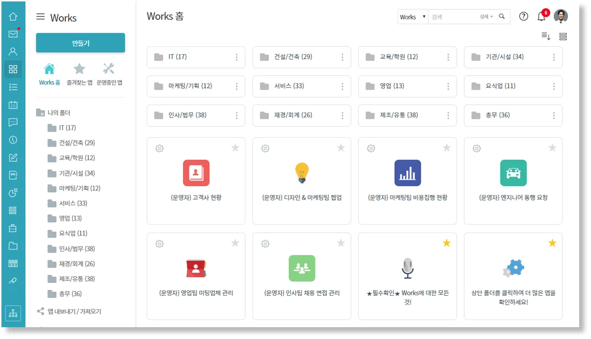 뉴페이스 등.장!! 여러분의 업무 효율성을 더욱 높여주고 있는 Works 기능이 샘플앱 추가 업데이트를 통해 더욱 새로워졌습니다!!! 다우오피스는 특허받은 Works 기능을 통해 더욱 다양한 산업과 직무에 도움이 되고 있는 샘플앱을 무료로 제공하고 있는데요. 이번 업데이트는 다양한 고객사의 니즈를 반영한 앱 100종을 추가했습니다! 샘플앱을 소개하기 전에 Works를 처음 접하신 분들이라면 아래 링크를 통해 먼저 소개해드리도록 하겠습니다~ 그렇다면 본격적으로 Works 샘플앱 뉴페이스들을 만나볼까요? 빠...빨리 소개드리고 싶어서 현기증이 날 것 같으니까요...! IT, 건설/건축, 교육/학원, 기관/시설, 마케팅/기회ㄱ… 쓰읍.. 다 읽다가 숨이 넘어갈 정도로 다양해진 앱들이 눈에 띕니다. 새롭게 추가..