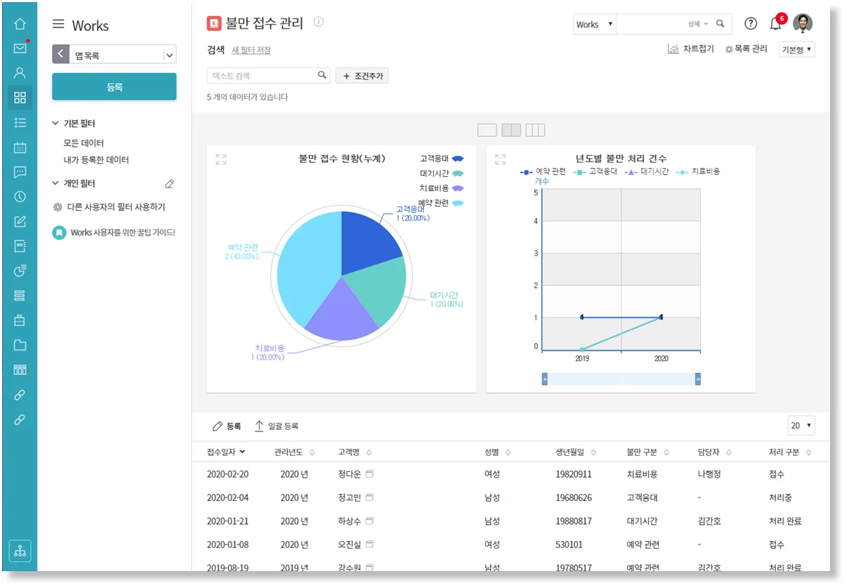새롭게 추가된 [불만 접수 관리] 앱을 자세히 살펴볼까요?
