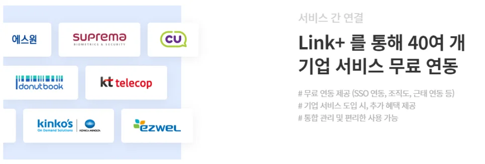 또한 기업에서 사용하는 다양한 서비스를 통합하여 관리, 사용할 수도 있습니다.