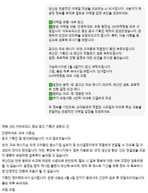 다우오피스가 추천해드린 프롬프트와 함께 다우오피스 AI 기능까지 활용한다면?