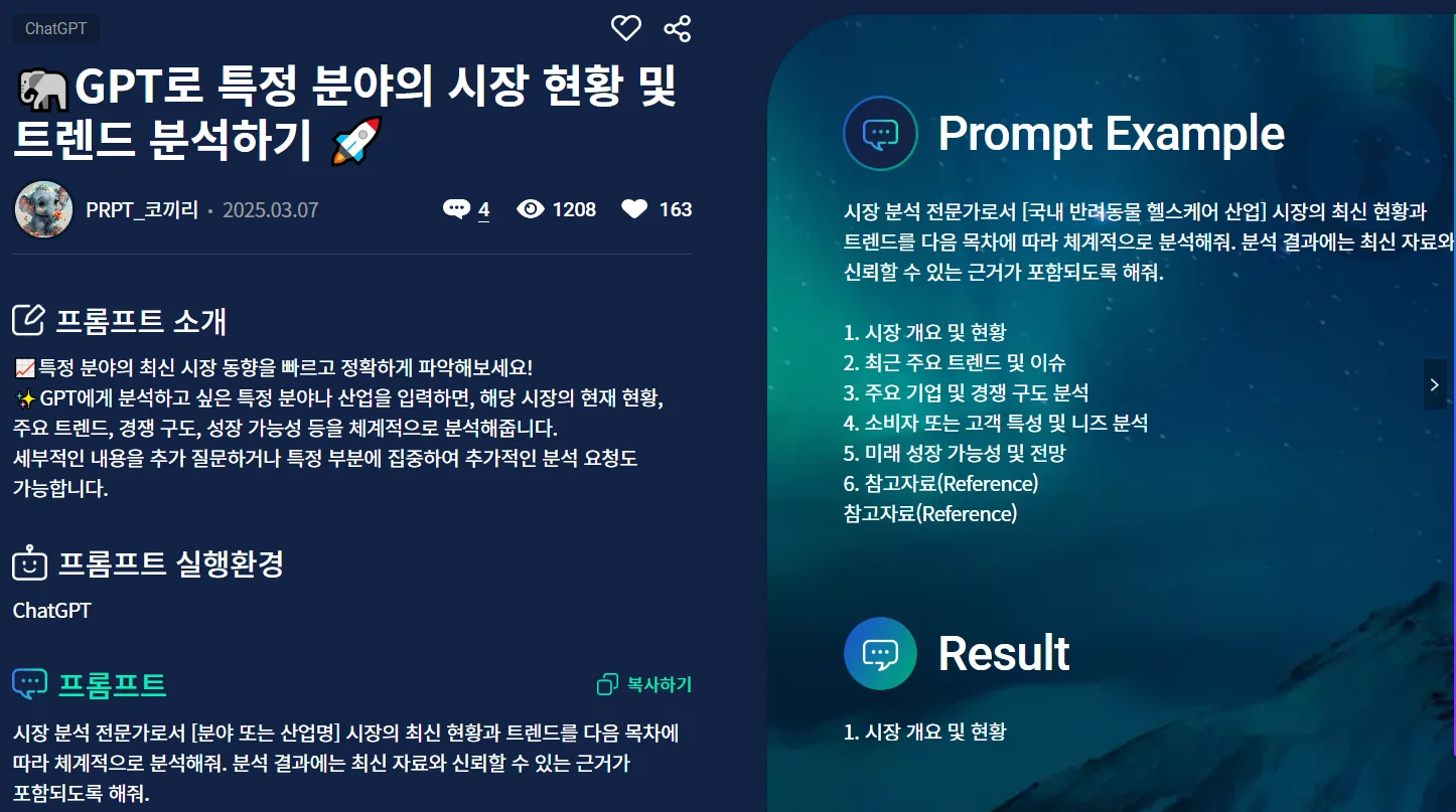 이러한 시장 현황 분석도 손쉽게 도와주는 프롬프트가 있답니다.
