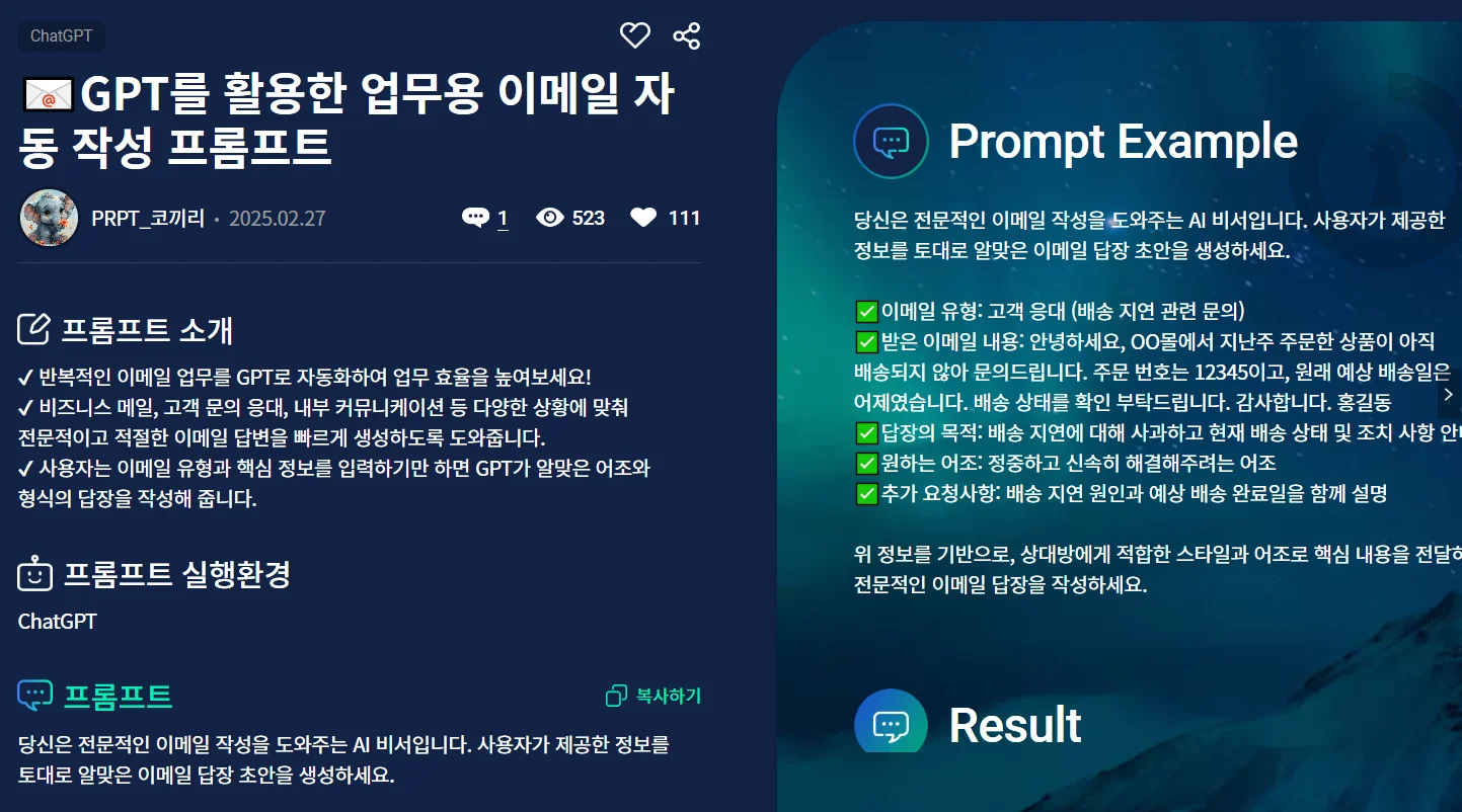활용 목적에 가장 맞는 프롬프트를 사용 가능하다는 장점이 있으니 적극적으로 활용해 보세요!