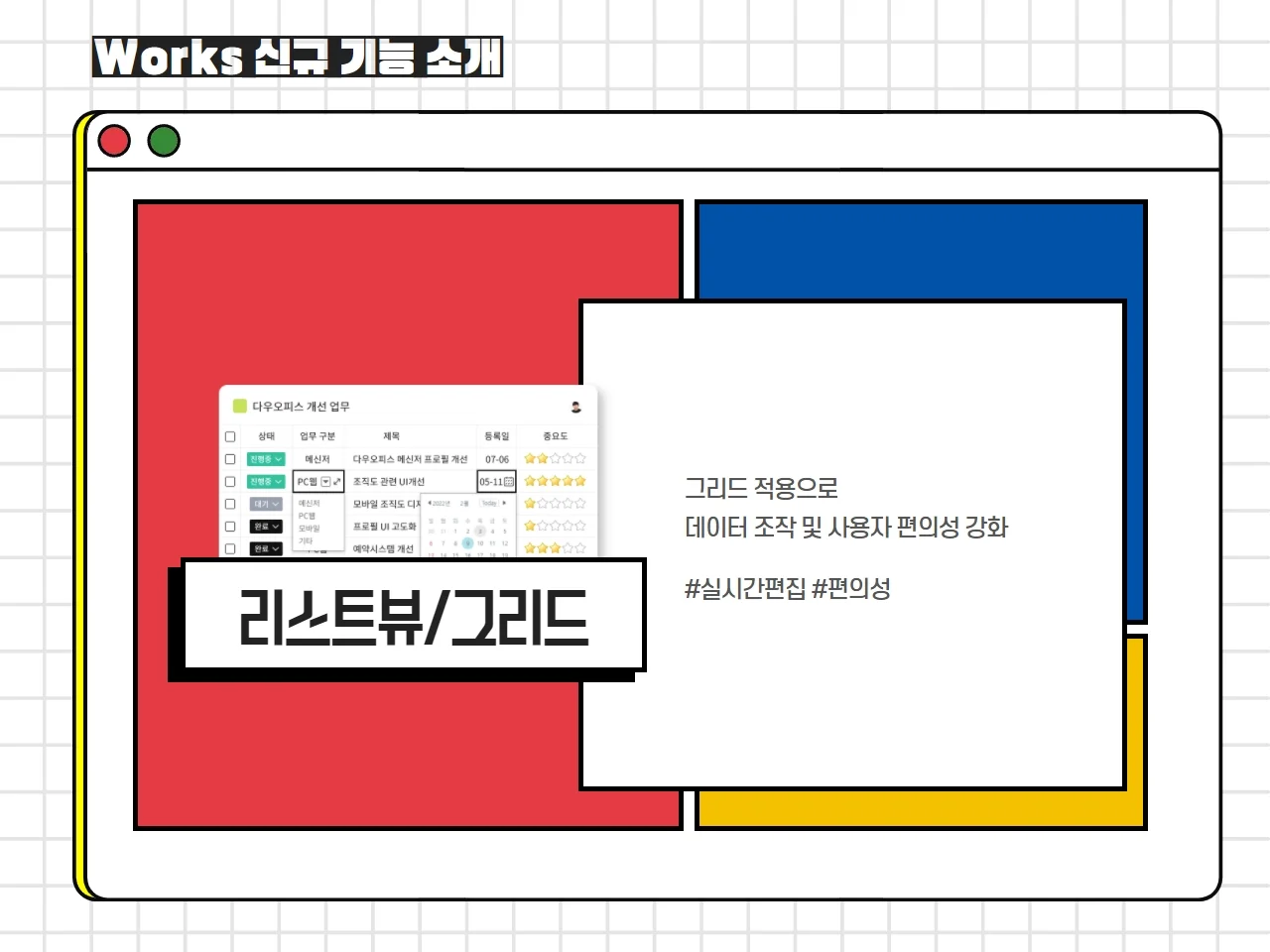 지난달 Works 신규 기능 출시를 기념하여 신규 기능들 중