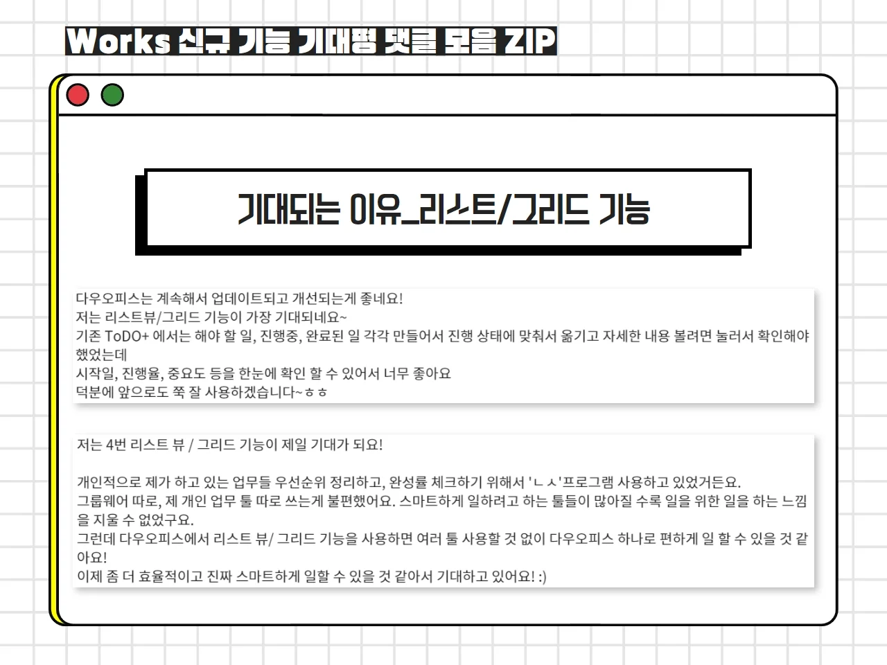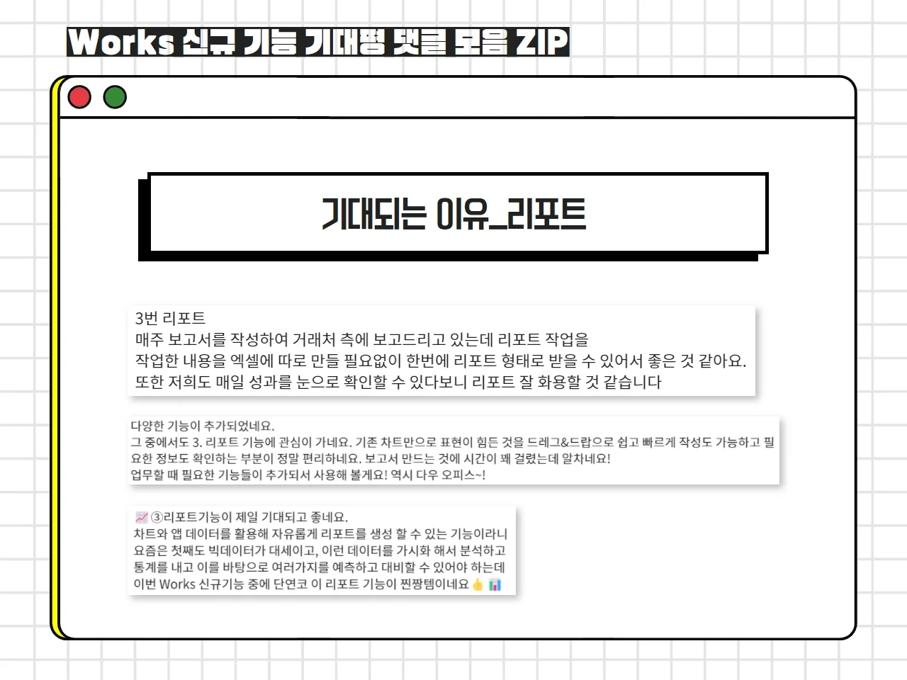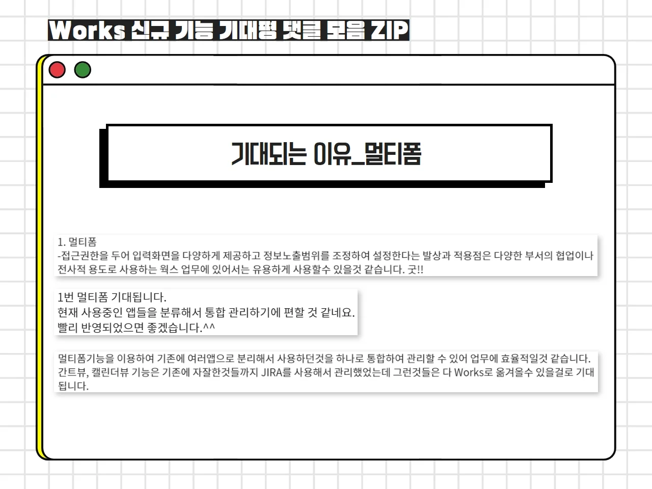 지금까지 Works 신규 기능 기대평 댓글 이벤트의 결과에 대해 말씀드렸는데요.