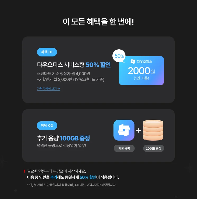 50% ν μΈ, 100GB μΆκ° μ©λ, μ ν νν, μΈν λνκΉμ§ νλ²μ!