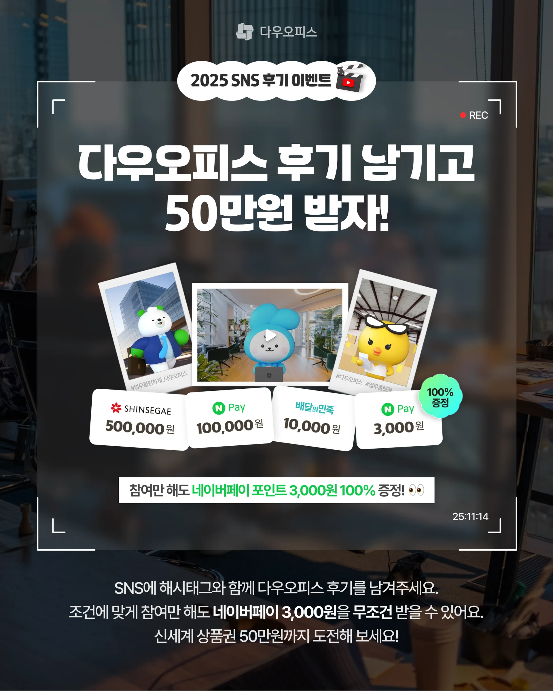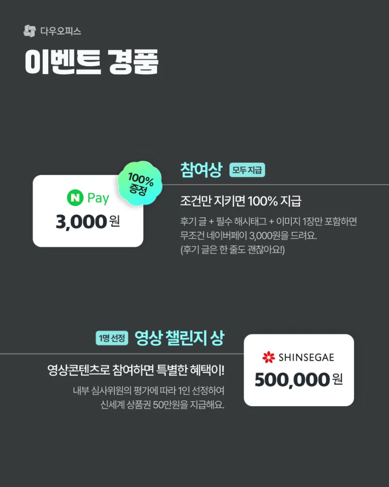#๋ค์ฐ์คํผ์ค #SNSํ๊ธฐ์ด๋ฒคํธ #100%๋น์ฒจ #์ต๋50๋ง์