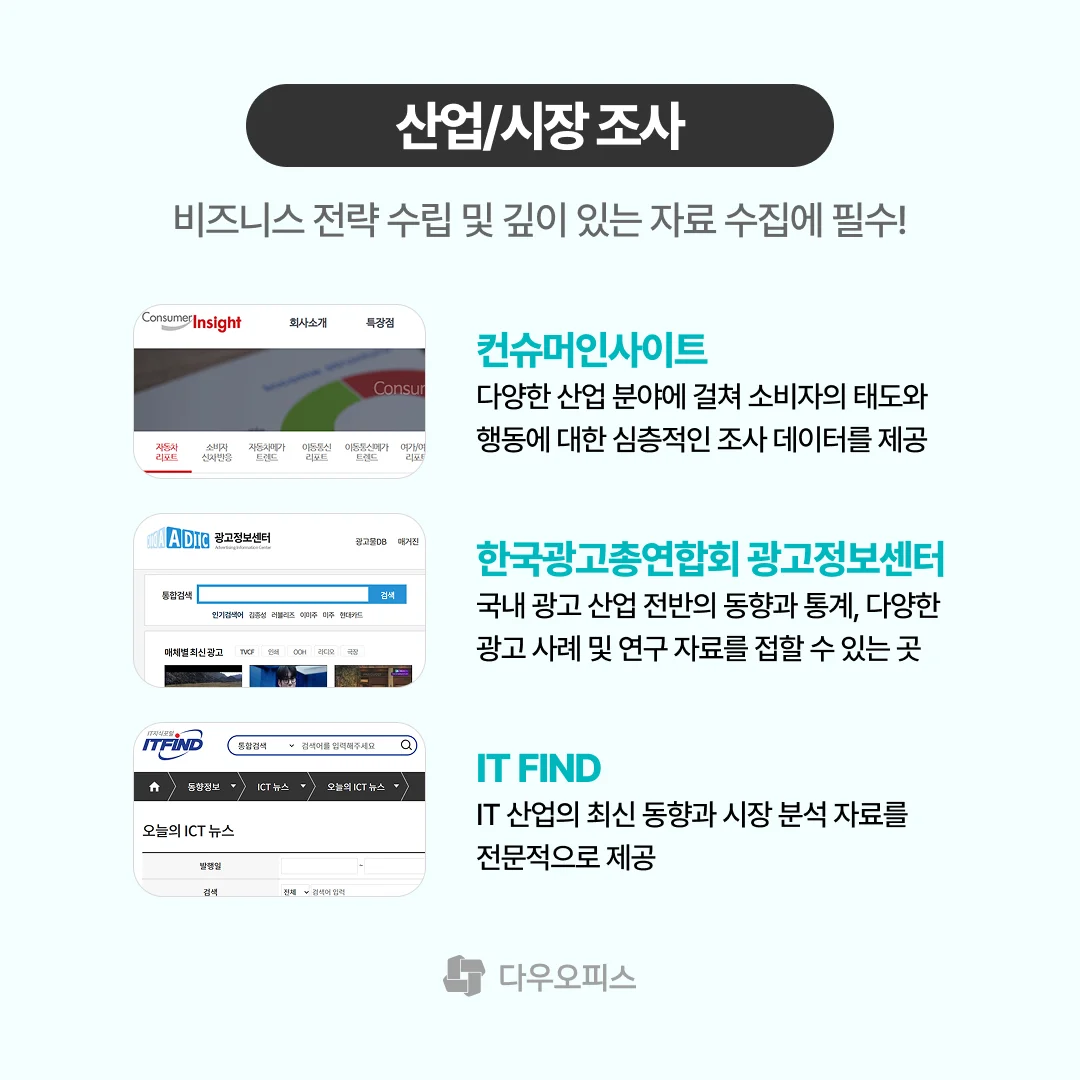 다우오피스가 엄선하여 소개해 드린 업무 자료조사 15곳, 유익하셨나요?