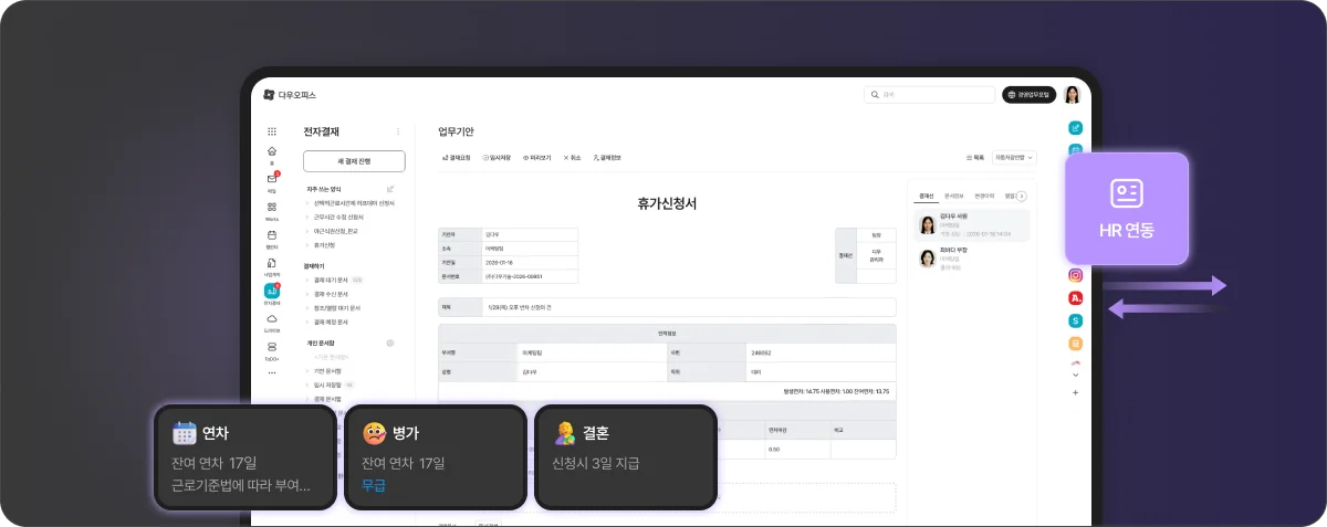 지금 바로 다우오피스 HR 연동을 경험해보세요.